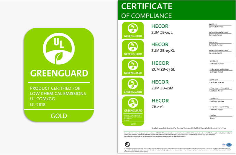 The honor of the ZUM series products achieving Gold Level in UL GREENGUARD certification demonstrates HECOR's commitment to sustainability and creating healthy indoor environments. In the future, HECOR will continue to strive to provide the market with many high-quality, safe space partition products.