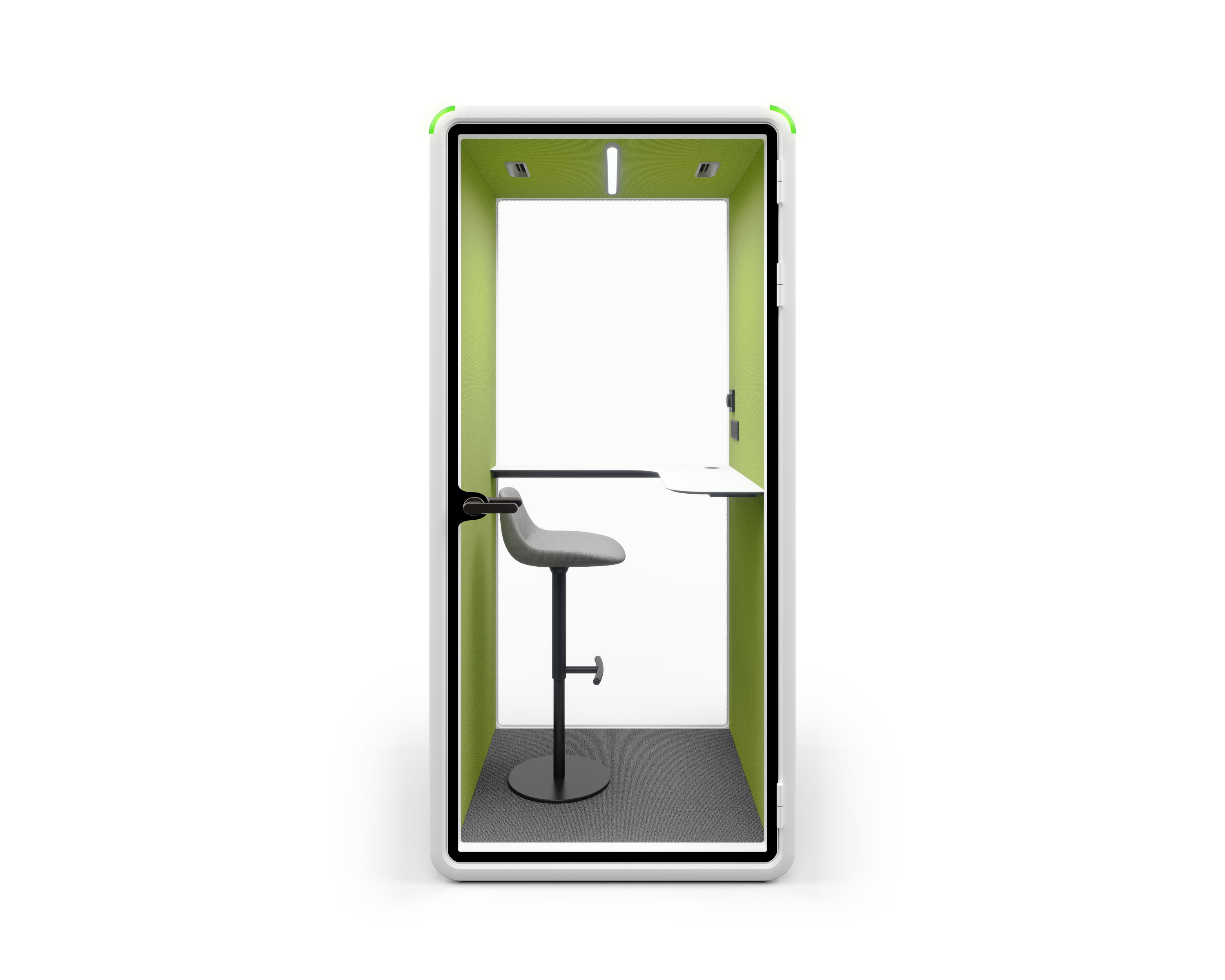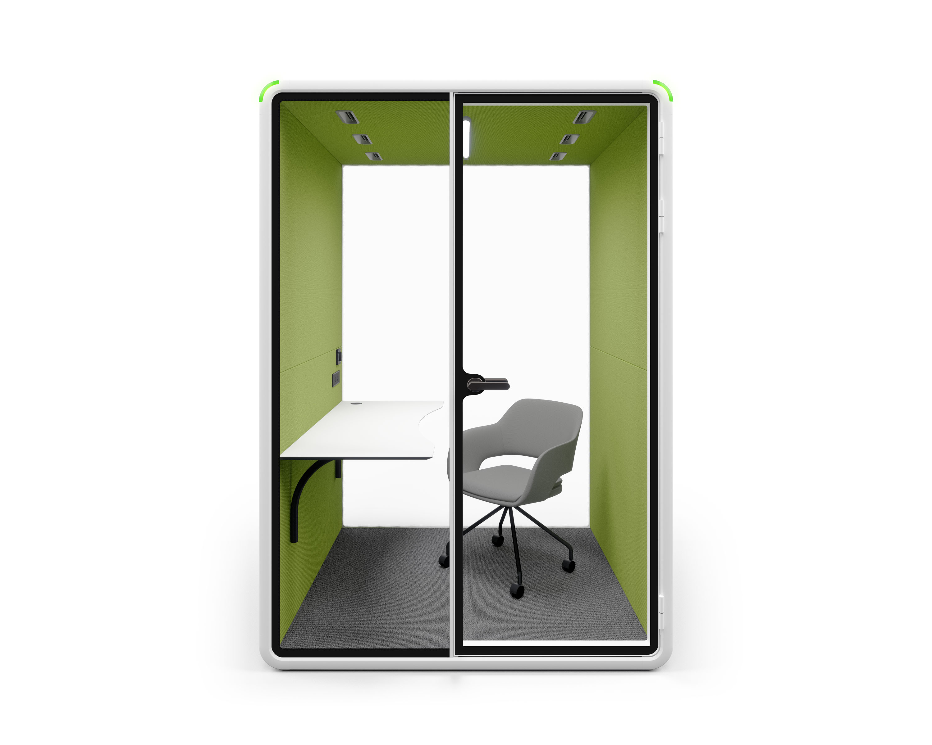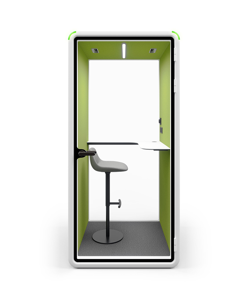 By 2 people in a mere 1 hour, a new booth will appear in your office(Model S). The booth'smodular design enables a swift installationprocess. This efficient setup reguires no trimming, bolting,or gluing. allowing immediate use.