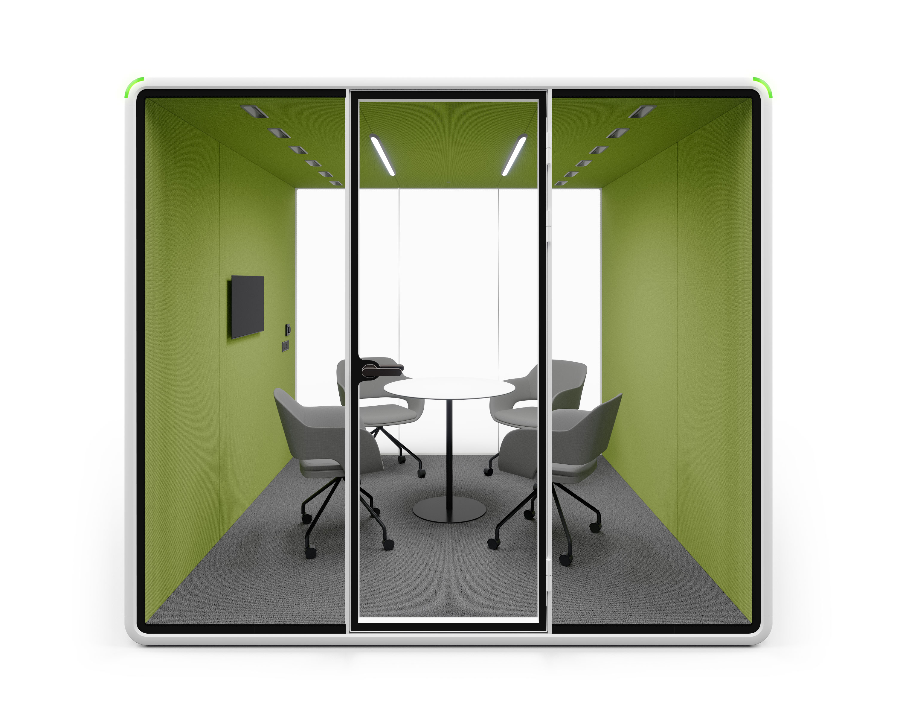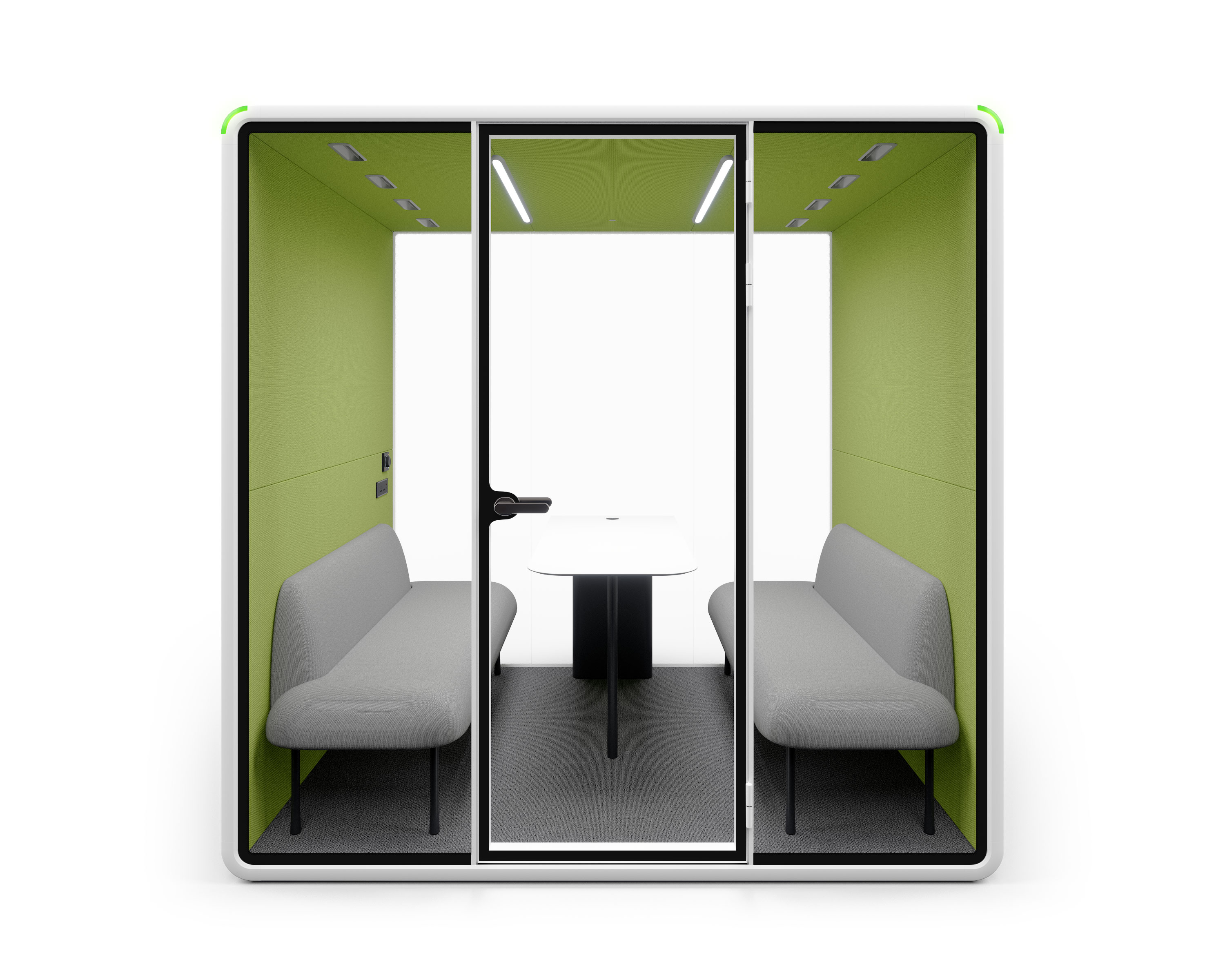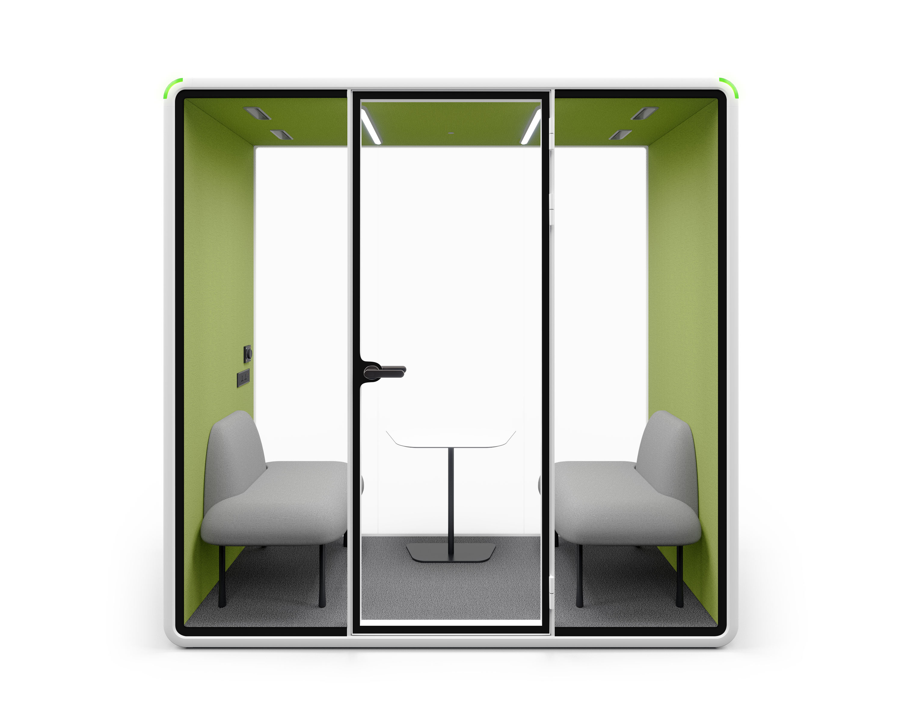 By 2 people in a mere 1 hour, a new booth will appear in your office(Model S). The booth'smodular design enables a swift installationprocess. This efficient setup reguires no trimming, bolting,or gluing. allowing immediate use.